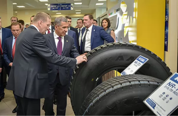 Рядом со стендом «Татнефти» президент задержался чуть дольше. Его внимание привлекла продукция шинного производства — несколько моделей грузовых и легковых шин, разработанных в прошлом году и уже запущенных в серийное производство. Президенту и гостям мероприятия был представлен образец ЦМК шины восстановленной на совместном предприятии ПАО «Татнефть» и компании Марангони С.п.А. (Италия) — ООО «КаМаРетрэд».