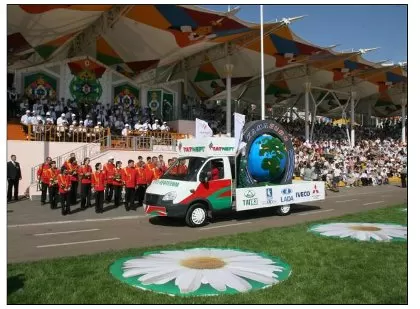 В торжественной колонне прошли и представители шинного комплекса группы компаний «Татнефть». Красочно оформленный автомобиль наглядно показывал, чем славится нижнекамский шинный комплекс: поставки шин на комплектацию крупнейшим мировым автопроизводителям, новейшие модели шин и географию поставок в России и за рубежом.